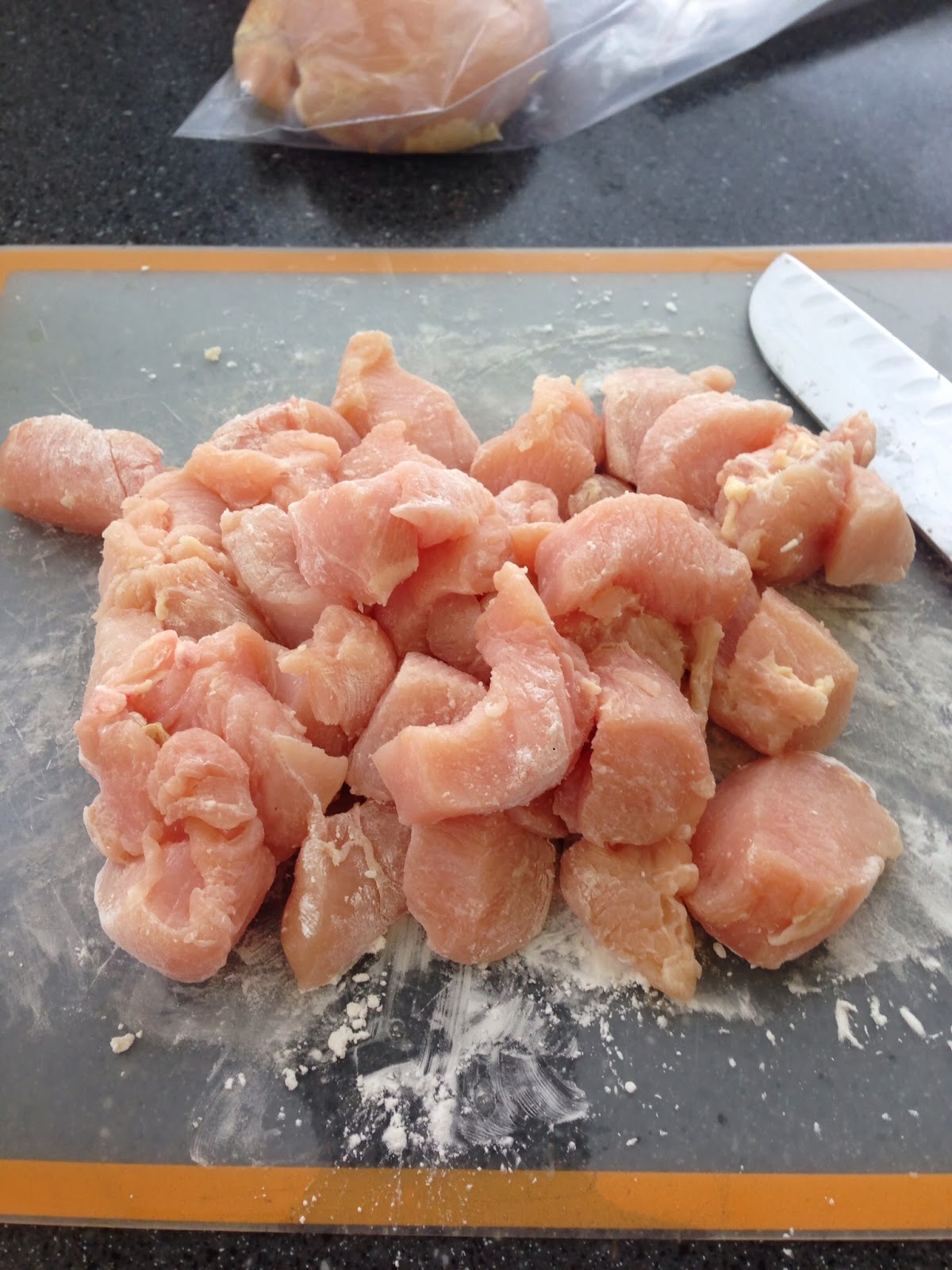 - 1 pound skinless, boneless chicken breasts (cubed)