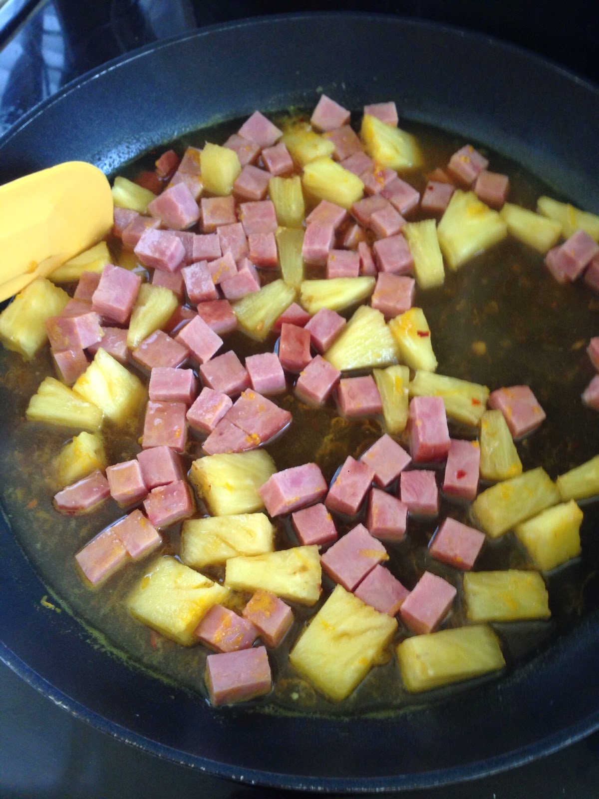 3. Cut the potatoes down the middle and pour the pineapple/ham mixture in. Enjoy!