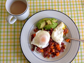 With the school year starting next week I have decided to mix up my typical breakfast. I usually make a big pan of hash (sweet potato, sausage, bacon) on Sundays and then microwave it in the morning before work, cook an egg and eat that with some avocado to get the fat-protein-carb combo going.