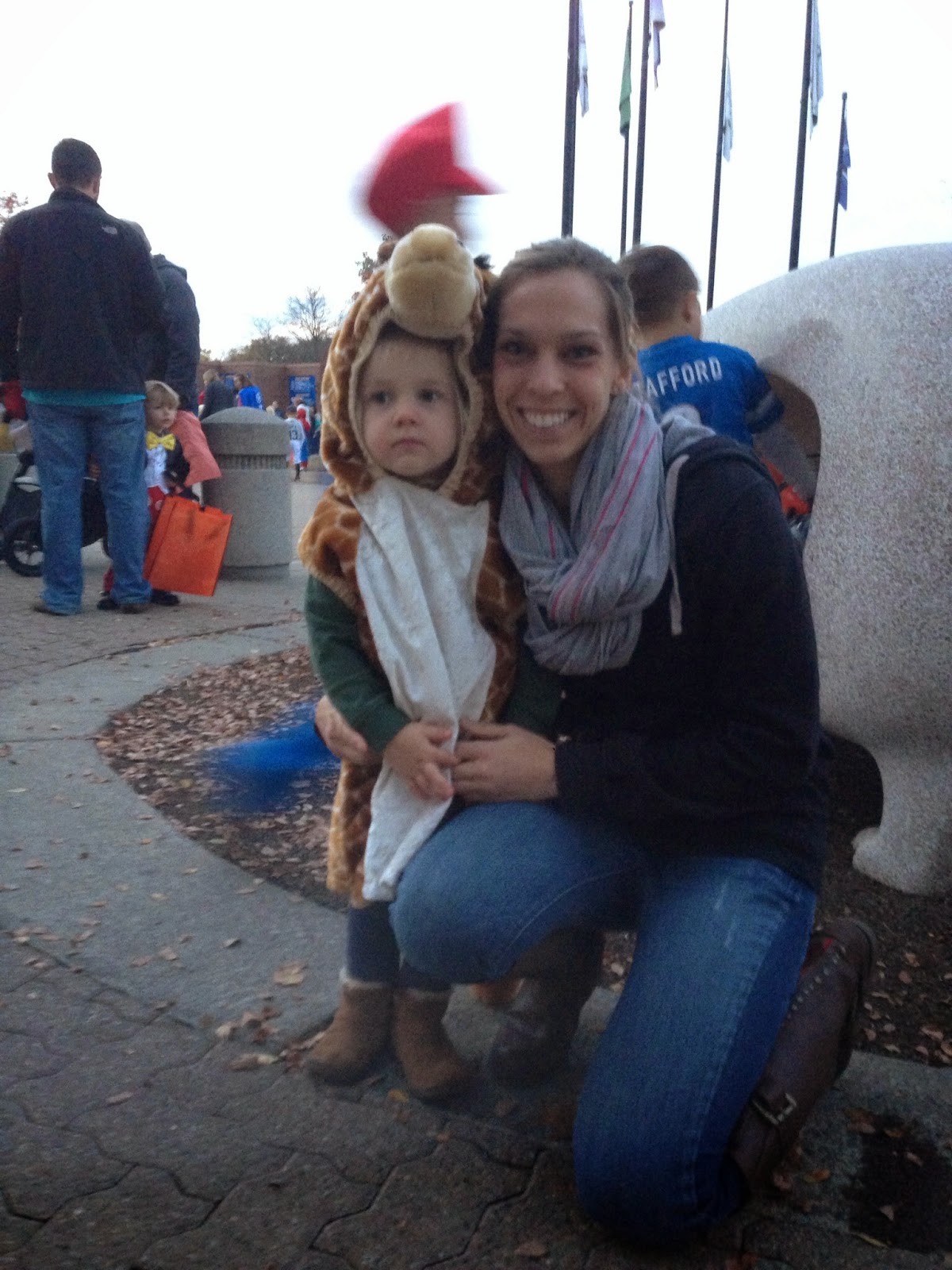 This past weekend we went to the Zoo Boo at the Detroit Zoo. The path of the zoo is lined with jack-o-laterns, there are cool displays of favorite characters made out of pumpkins/squash and there are candy stops along the way. It is perfect for someone her age who would like trick-or-treating, but going from house to house might be a little far. It was fun to spend Friday night with my little giraffe.