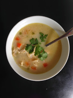 I made this soup after a craving for chicken chili... it turned out not even close to chicken chili but was tasty none the less... and really easy. The spicy-ness gets calmed down by the coconut milk if that was a concern for you. It was a great lunch for me all week- light and warming.