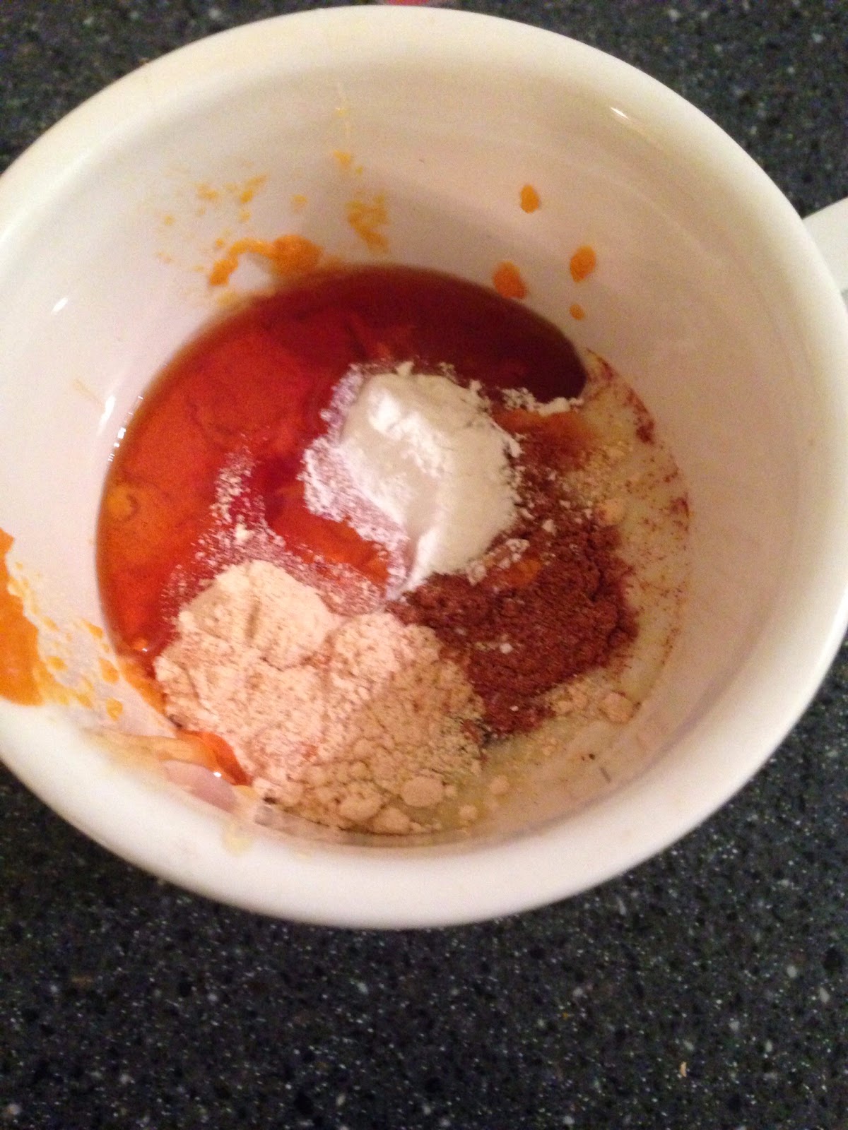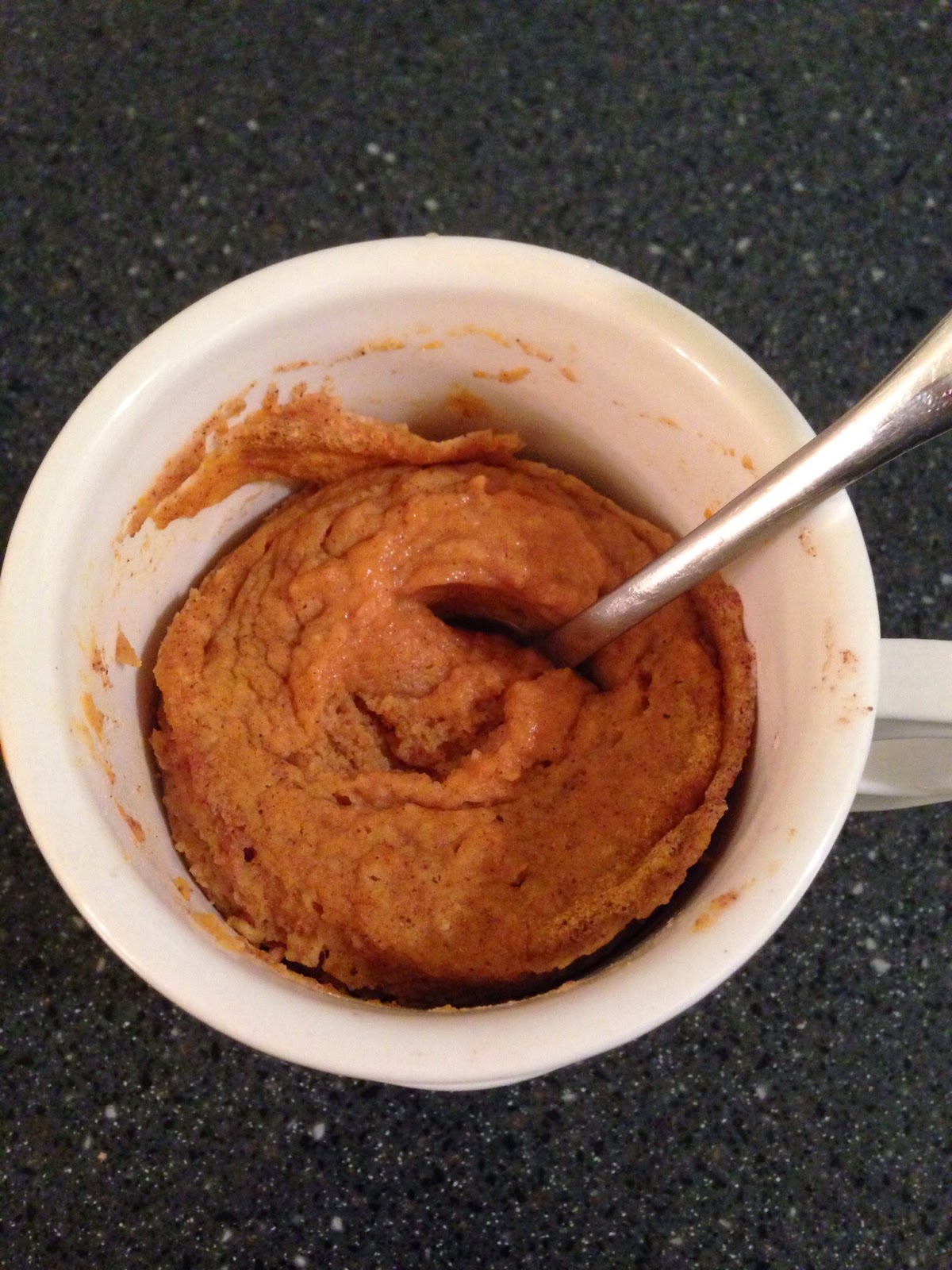 I posted this one on Facebook this week and it was one of the most popular things I have posted, so I made another (see below) This particular Pumpkin Pie Mug Cake came about because I had extra pumpkin to use up and it a perfect serving for 1.5 people (my peanut and me) Just takes two minutes in the microwave- cavemen had those, right? Hehe