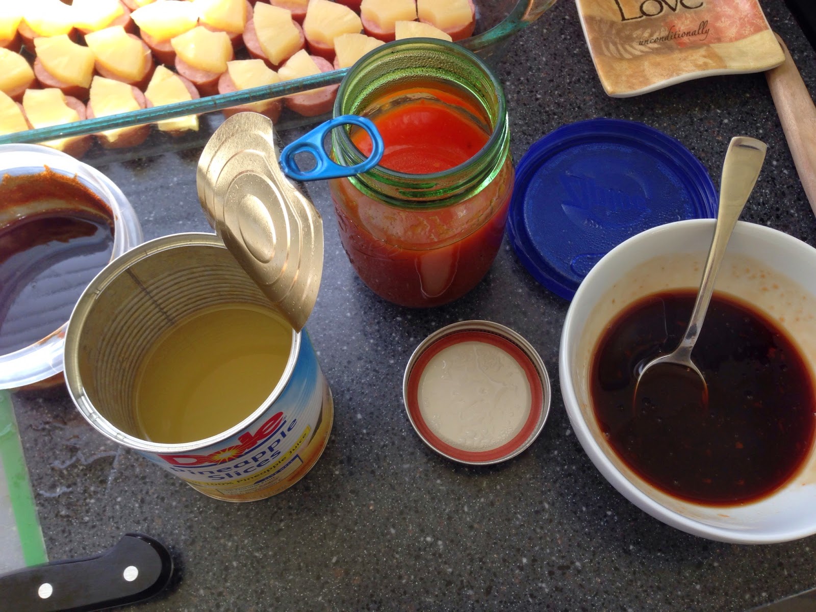 I spent New Year's with a small group of friends... we met through CrossFit, but our relationship goes beyond the box. My friend Kelly hosted and we all brought appetizers. Two of the ones I made were completely not healthy- who cares it is New Year's- but the other one I ended up making two homemade sauces for that turned out really well. I am using the same sauces to glaze salmon this week for dinner- they make WAY more than you need for this recipe. The recipe is from the following website... but with store-bought sauces- http://realhousemoms.com/glazed-kielbasa-bites/... therefore I am re-naming it :)