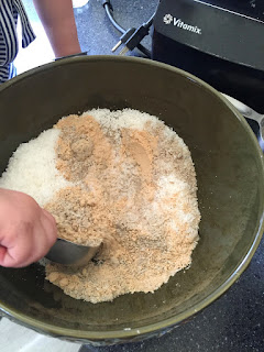 2. In a large bowl, add the sunflower seed flour, coconut, coconut flour, salt and zest. Mix.