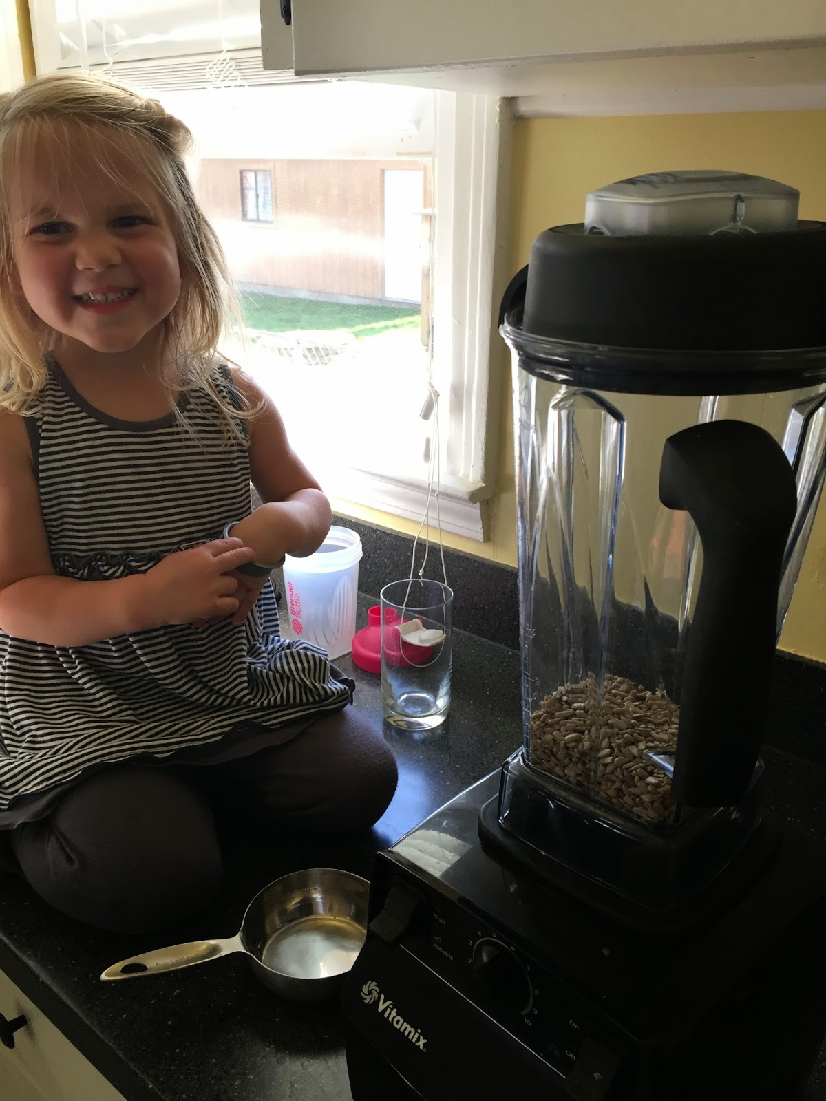 1. In a high-powered blender, add the sunflower seeds and pulse until a flour is formed. Stop the blender to stir the clumps from the bottom so you don't make sunflower seed butter.