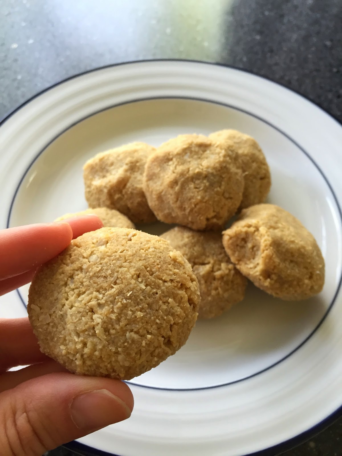I adapted this recipe from a dehydrator cookbook... they looked too yummy to pass up. The recipe used almond flour, different ratios of flour, agave, vanilla and lemon juice, but all of that can easily be changed for a nut-free, paleo version. Making them in a low-set oven or dehydrator creates a firm outside and almost a melt-in-your-mouth inside. I know a lot of people don't have a dehydrator- I just got one a present for Christmas- and although I make a lot of my own dried fruit, etc. I realize that it is way more convenient for most people to buy dried fruits and jerky because, for example, pears take 10-12 hours to dehydrate. Setting your oven on the lowest setting gets the same result with these cookies- just reduce the "cooking" time and keep an eye on them.