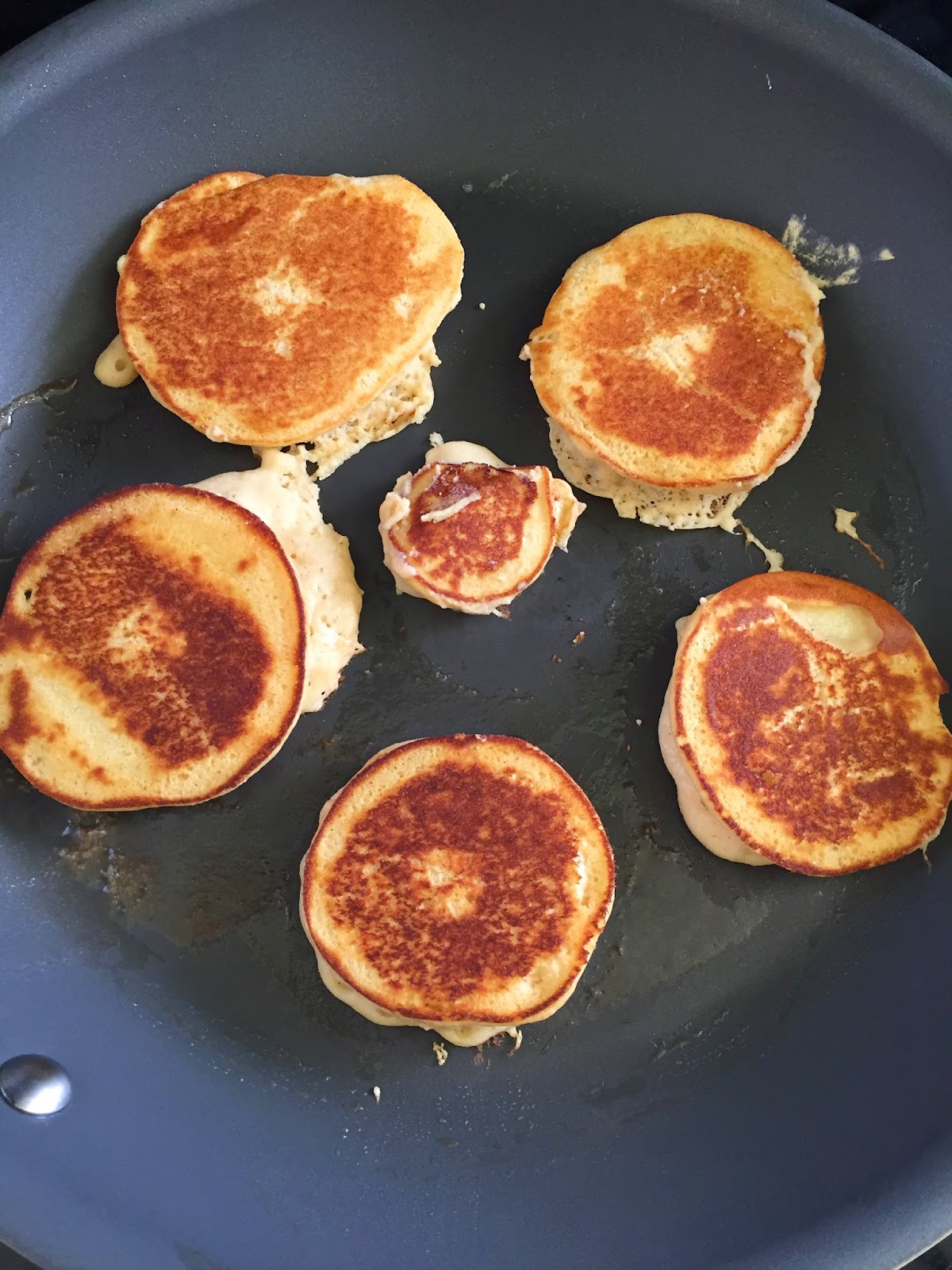 The idea for these pancakes came from the back of a bisquick box. They are a quick mid-week dinner or a weekend breakfast. I ate so many of the banana ones! You could really use any batter you like, but this is quick to put together and coconut flour is high in protein, fat, and fiber... more so than most other flours. It is also cheaper than almond flour and the pre-made gluten free baking mixes. If your batter starts to look too thick, add more milk or water.