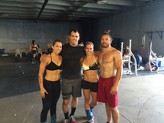 A little over a week ago I competed in the Pure Michigan Open- last year this was an invite for the best individuals in Michigan (This is last year's post) this year it was teams- a lot of really good teams! Our team was kind of last minute, but we had two strong guys (Dave and Matt) and Mara and me. I had a blast- it's really fun competing on a team and the people I was with are the always supportive and positive types- we had some great workouts (won the rowing event) and some not so good events (1 RM snatch and C&J) and finished in the top half. Not too shabby. :)