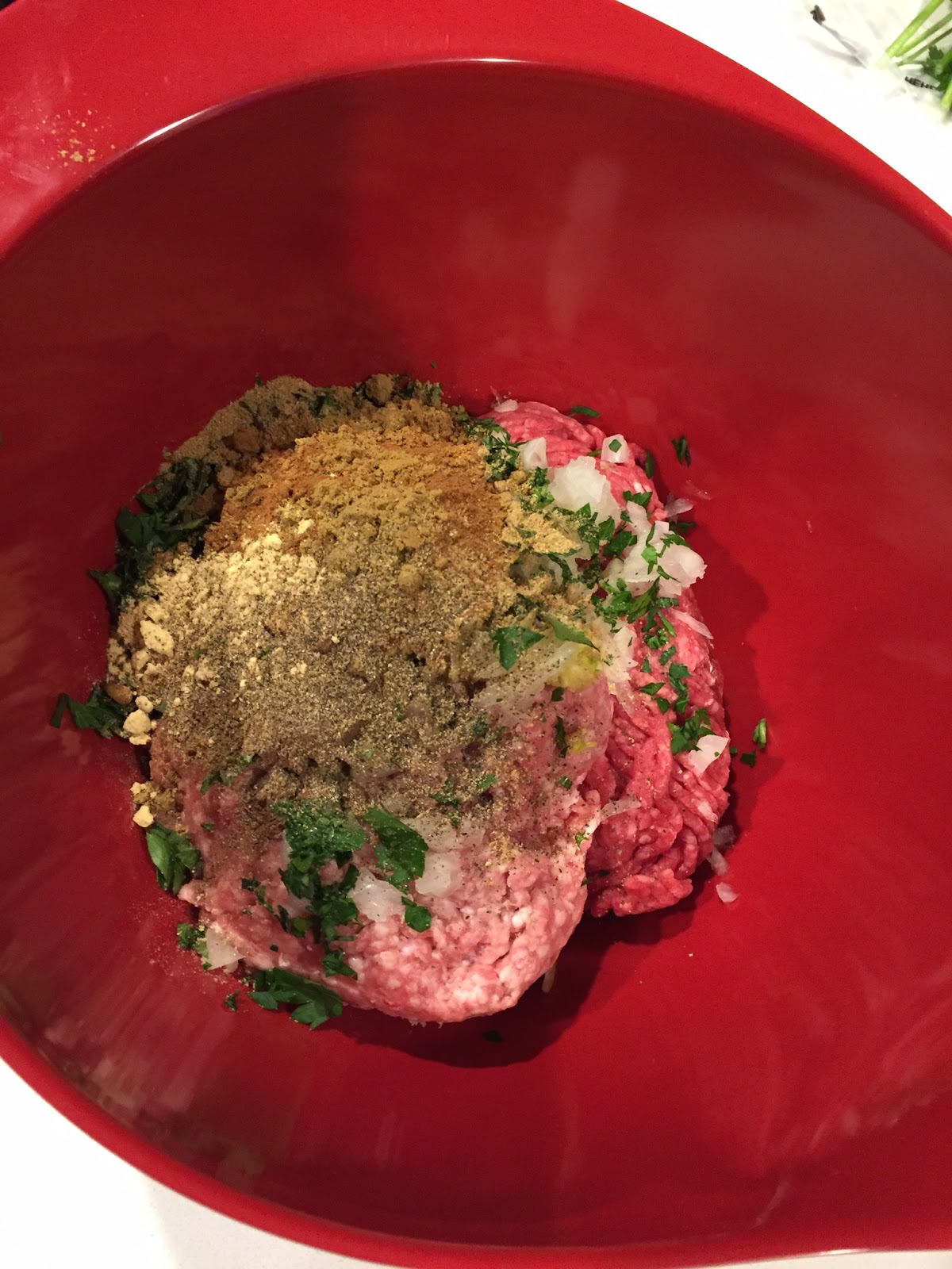 Kofta (or Kafta) is a spiced meatball, often on a skewer, that you might find in lebanese restaurants, all over the Southern Mediterranean region of the world, and India also has their own versions which can even be vegetarian. I am no expert on this type of cuisine, but re-read my indian cookbooks and love the flavors so I added what I liked and subtracted what I don't, hence the "inspired" in the title. Because I was not going to outside in the literally 5 degree weather I made mine into meatballs and baked them in the oven... when it warms up I will make the same recipe, put each meatball on a skewer, flatten them slightly and grill them- it just seems like the more traditional version I have had before. :) Served with a good quality hummus from our local specialty store this was a perfect dinner! I also added some broccoli to mine!