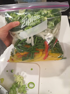 I went into the pantry and freezer to see what I could do about not spending a lot at the grocery store... success!!! I only spent $62 and for a family of three that is pretty damn good. When I make a stir-fry a lot of the ingredients come from Costco. Because the vegetables are in such large portions I cut everything but store what I am not going to make that day in freezer bags so when tight weeks like this come up, or I am busy, I can pull one out, thaw some chicken and I am good to go!