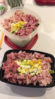 Week 3- romaine with chopped lunch meat and hard boiled egg (Chef's salad)