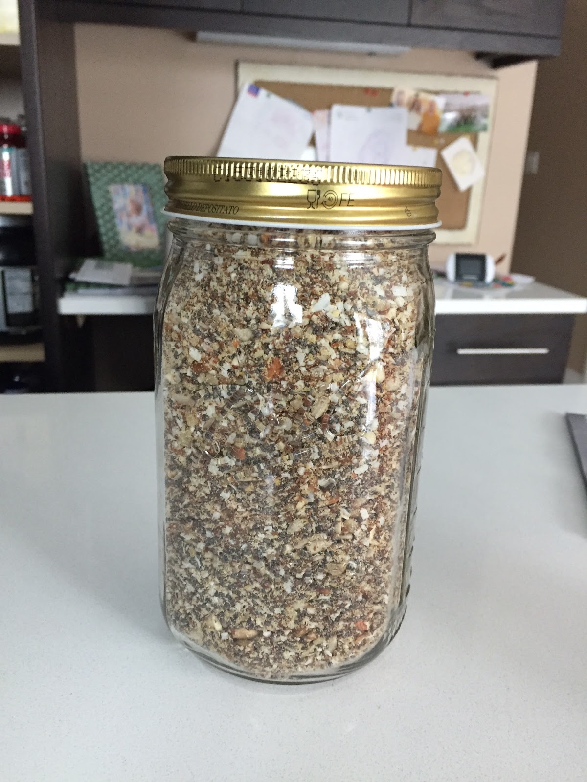 1. In a food processor, pulse all of the ingredients until they are coarse pieces- think the look of oatmeal :)
