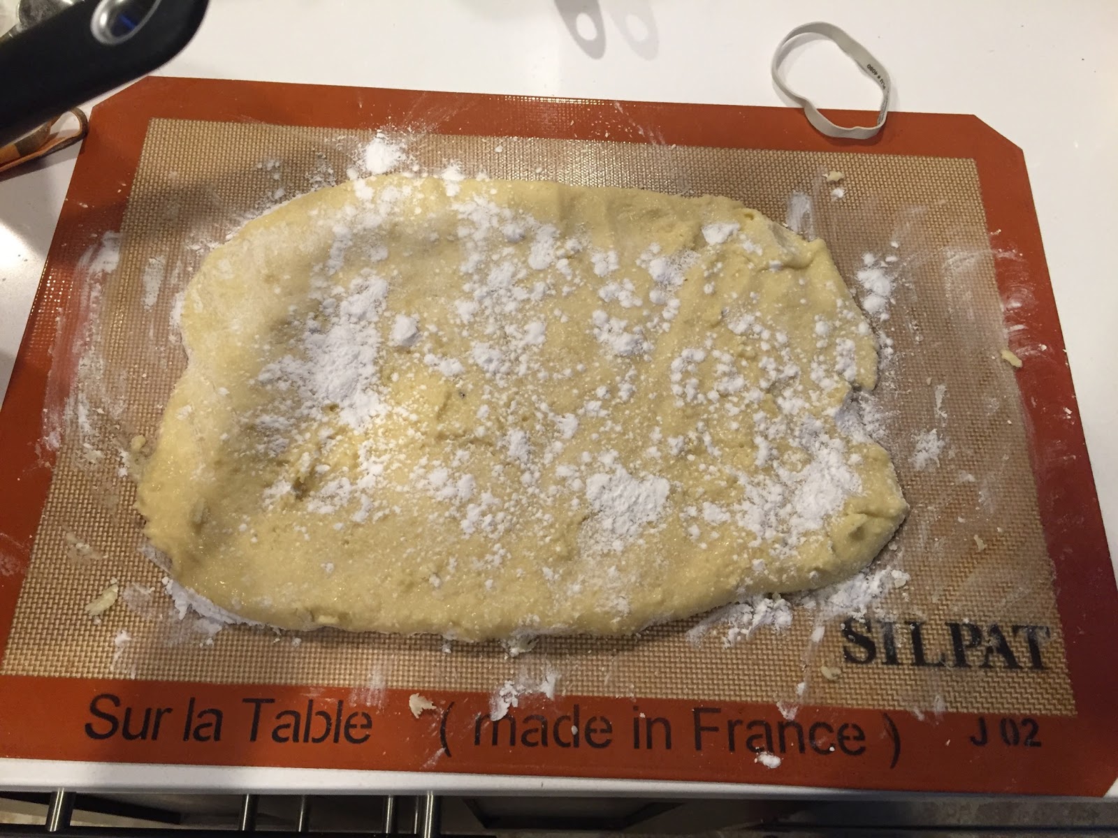 3. Dust a non-stick silicon baking sheet, or a piece of plastic wrap with arrowroot powder- make sure it covers the surface so the dough won't stick when you roll it out at the end.