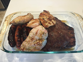 Grilled with the steak, seasoned with lemon pepper and garlic salt.Chicken Sausage-