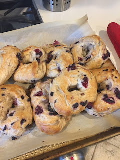 Bagels, Scones and BBQ Beef Sandwiches...for food prep we are keeping it simple through the open- grilled chicken with rice and veggies for lunch every day.Homemade bagels- anyone who knows me knows I look forward to my Friday bagel. I usually get a salt bagel, but sometimes I do blueberry and rub it on a salt bagel because I enjoy the "essence" of salt. hehehe. So today since I was making my own I put salt on my blueberry bagel and the stars aligned and heaven opened up. Turns out that bagels are not hard to make, they are just time consuming because you have to let the dough rise twice basically.