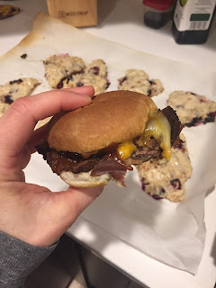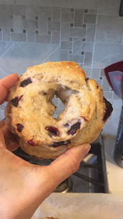 Bagels, Scones and BBQ Beef Sandwiches...for food prep we are keeping it simple through the open- grilled chicken with rice and veggies for lunch every day.Homemade bagels- anyone who knows me knows I look forward to my Friday bagel. I usually get a salt bagel, but sometimes I do blueberry and rub it on a salt bagel because I enjoy the "essence" of salt. hehehe. So today since I was making my own I put salt on my blueberry bagel and the stars aligned and heaven opened up. Turns out that bagels are not hard to make, they are just time consuming because you have to let the dough rise twice basically.