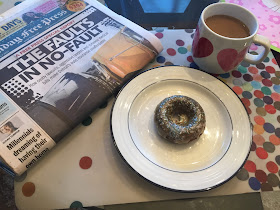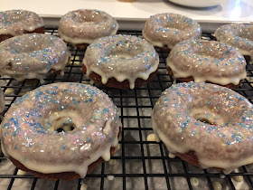 The first time I made these I used "A Big Man's World" recipe for Flourless Cinnamon Bun Breakfast Donuts- while they were good, I thought they were fairly dry and just not amazing.