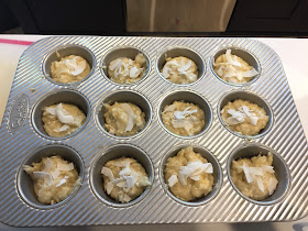 2. Using a non-stick muffin pan (I LOVE my Sur la Table ones) or grease a muffin pan... divide the batter evenly. Top with the remaining 1/2 cup of coconut. Bake for 20-23 minutes until the top spring back when you lightly touch it, or a toothpick inserted comes out clean.