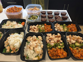 Staples made every week- roasted sweet potatoes for lunch and breakfast, rice, grilled chicken (8+ breasts)