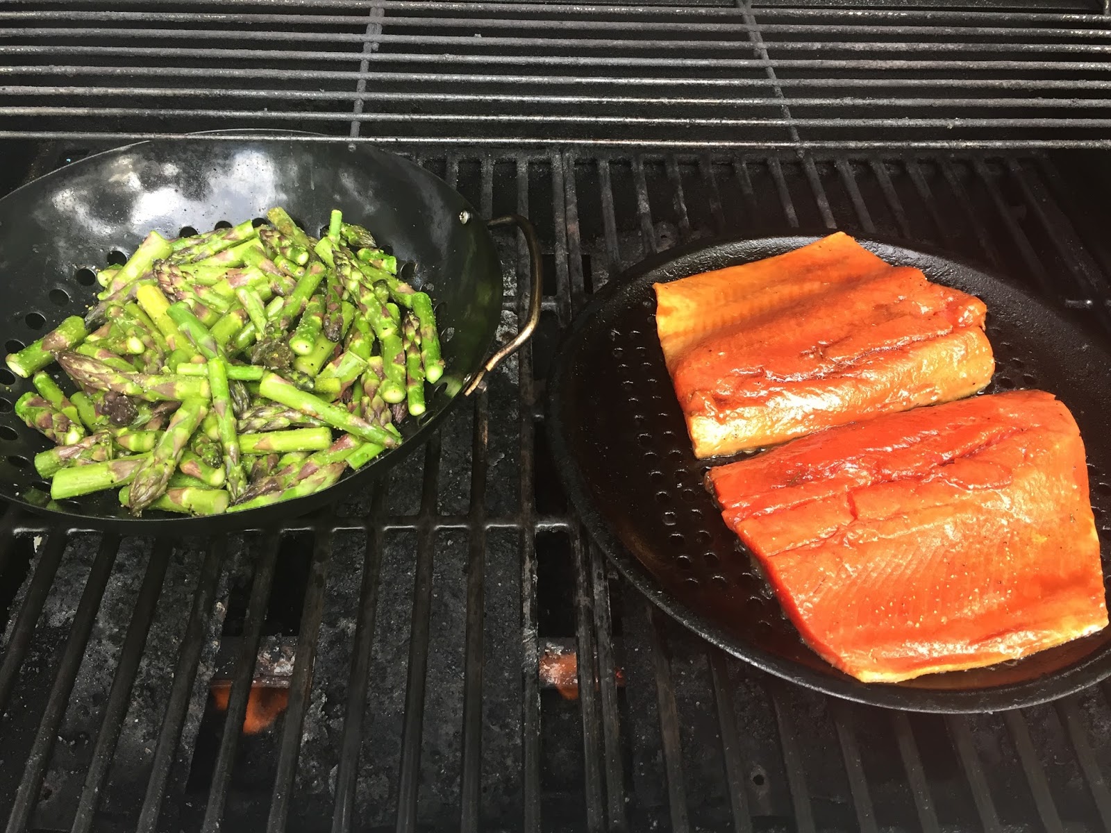 The great thing about fish is it doesn't need to marinate for very long! I put this together when I got home and 2 hours later we were ready for the grill. The sugar makes a delicious almost crust on the salmon... we ate it with grilled asparagus and rice. I used the lemon pepper and garlic powder on the asparagus as well.- 2-ish lbs (1-2 filets) Skin-on, Wild-caught Salmon (look for it at Costco!)