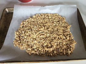3. Bake 18-20 minutes. At the half-way point, turn the granola in large sections if possible and press it together again. Take it out when it is slightly browned, it burns quickly and hardens as it cools so don't walk away! Once it has completely cooled, break it into pieces. I store mine in mason jars.