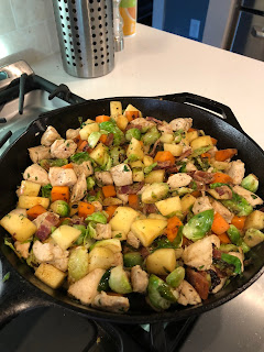 This recipe smelled like Thanksgiving and looked like Fall... the ingredients are in season for the most part and it was heaven in a bowl on this perfect, sunny, 60 degree day. When you are prepping, try to cut everything the same size so it cooks evenly.