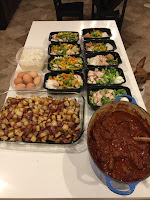 Weekly Workout/Meal Prep (Vol. 5)- Baked Chicken, Blueberry Muffins, Oven Fajitas, Stew Beef and Chorizo Chili, Crockpot Deconstructed Cabbage Roll Soup, Hard boiled eggs, Veggies, Rice, Roasted Red Skin Potatoes