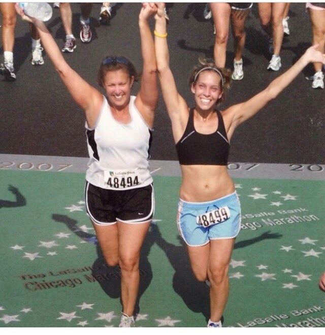 For my mom's 50th birthday she wanted to run a marathon... so here is us running the Chicago Marathon the year it was cancelled mid-race due to extreme heat and no water on the course... but we finished then and did Chicago two more times. :)