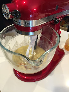 1. With a mixer, or your arm muscles, mash the banana and add the eggs, vanilla, coconut oil, milk, and honey. Mix until well combined.