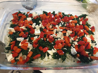 2. Whisk the milk and eggs. Grease a 9x13" pan. Sprinkle in the potatoes. Top the potatoes with the bell pepper, spinach, feta, onion and salt/pepper. Pour the eggs/milk over the top. Let it sit in the fridge 2+ hours or overnight.
